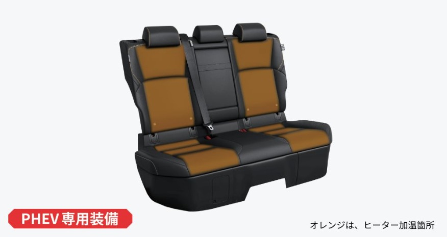 RSグレードになると、充電関係の装備が追加されます。ステアリングの加飾やシートの素材が変わり、前席に加えて後席のヒーターも備わります。